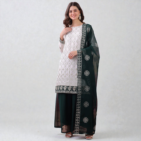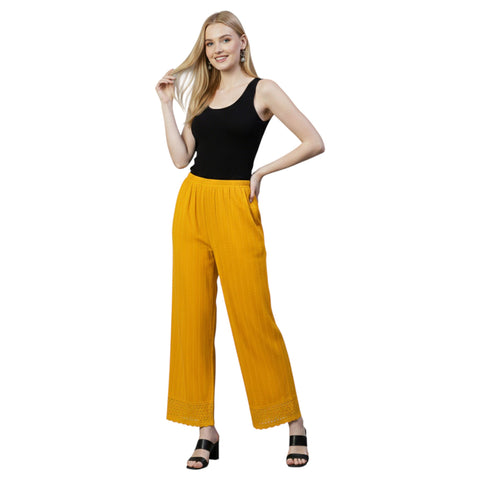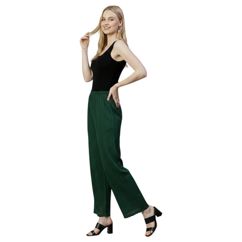 Kaurvaki Women's Chikankari Embroidered Rayon Traditional Lucknowi Work Palazzo M-2