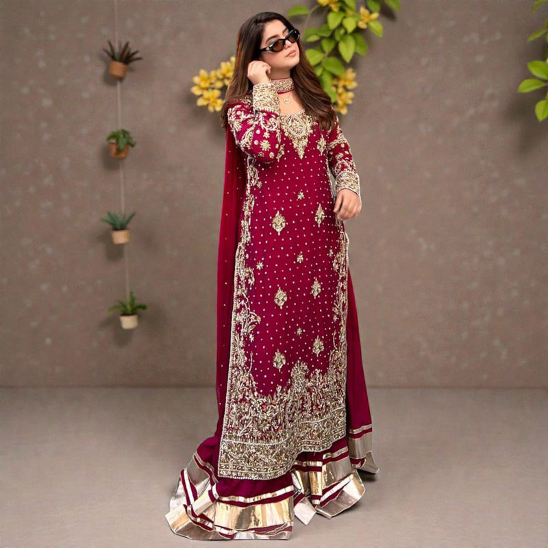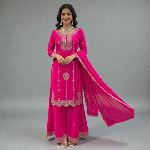 Kaurvaki's Designer Silk Blend Palazzo Suit with Heavy Zari Work Festive Ethnic Wear for Women KD-05