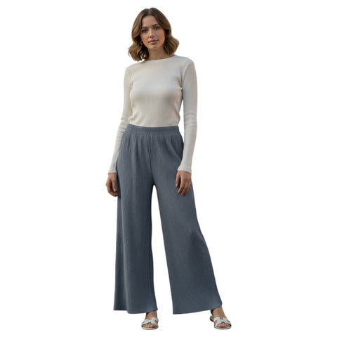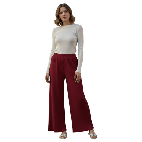 Premium Heavy Lycra Pleated Palazzo Pants – High-Waisted Elastic Comfort Fit MB-13