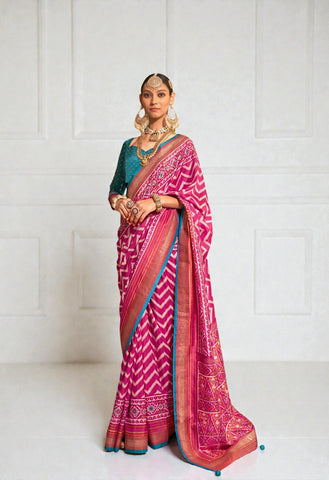 Pure Silk Patola Saree Traditional Indian Wedding Wear Intricate Ikkat Pattern with Luxurious Patola Silk AB-6
