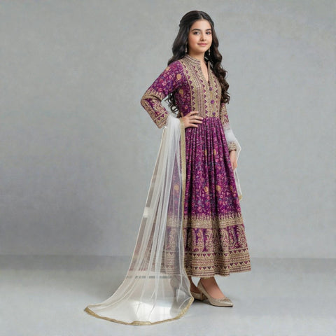 Girls' Trending Party Wear Full Flare Long Dress for Birthdays, Weddings Coty-Gown RK-2