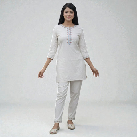TRENDING THE MOST CLASSIC HANDWORK COORDSET *FABRIC:KHADI COTTON* *SIZE:M L XL XXL* *CAUSUAL PARTY/OFFICE WEAR