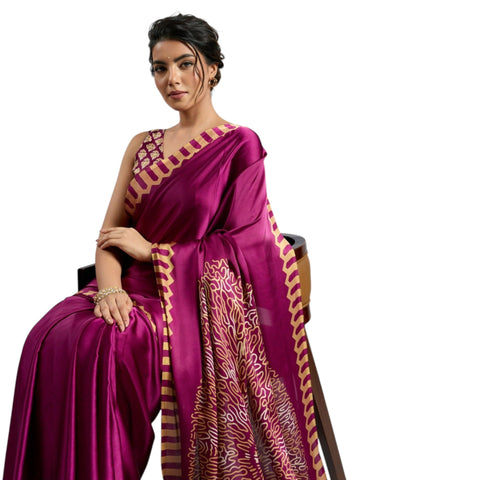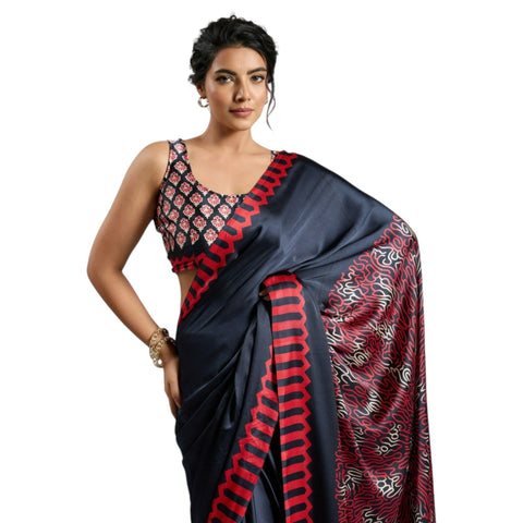 Premium Pure Satin Silk Saree with Authentic Ajrakh Hand-Block Print Luxury Traditional Ethnic Wear for Women AB-41 Premium Pure Satin Silk Saree with Authentic Ajrakh Hand-Block Print Luxury Traditional Ethnic Wear for Women AB-41
