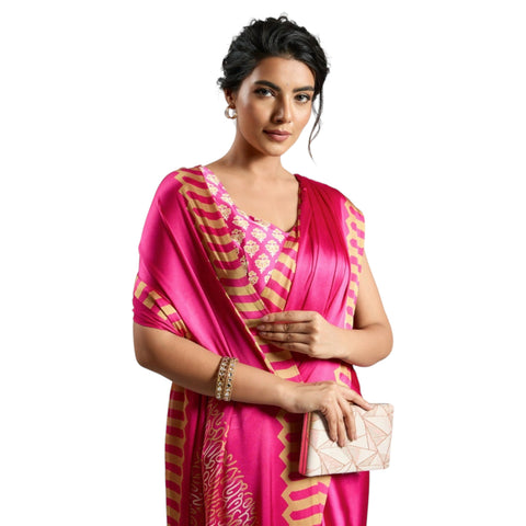 Fabric: 100% Pure Modal Satin  Craft: Authentic Ajrakh Hand-Block Print. Details: Rich traditional motifs with a sophisticated finished border. Feel: Ultra-soft, lightweight, and cooling on the skin. Dimensions: Saree: 5.5 Meters | Blouse: 0.8 Meters ...