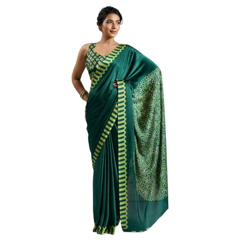 Handpicked Lite Weight Soft Satin Silk Bandhej Print Sarees With Allover Zari Weaving Border Design And Having Rich Pallu Contrast Design Kanchi Zari Weaving Border Highlight Of The Saree is Throughout The Saree Detailing With...