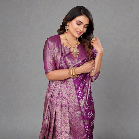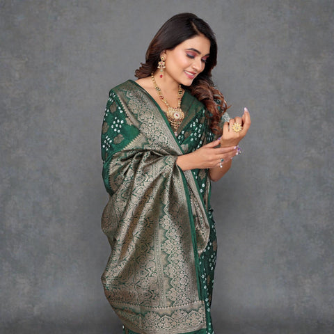 Pure Handmade Bandhej Silk Saree Original Rajasthani Bandhani with Zari Weaving Butta Rich Pallu & Big Broad Border Luxury Traditional Wedding Wear VE-14