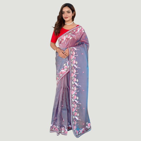 Saree Fabric: Premium Soft Lichi Silk (Breathable & Lustrous). Work: High-Definition Digital Floral Prints + Intricate Zari Woven Border. Saree Length: 5.5 Meters. Blouse: 0.80 Meters (Unstitched Contrast Fabric). Vibe: Classic, Royal, and Fresh. Occasion:...